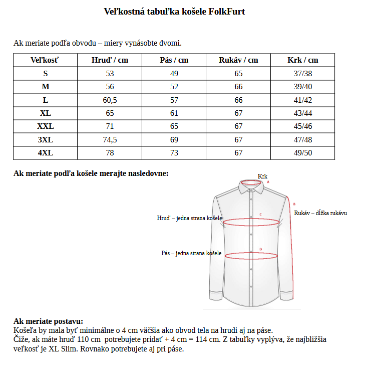 - Košeľu máme dispozícii v rozmeroch od S po 7XL, aby sme uspokojili všetky postavy